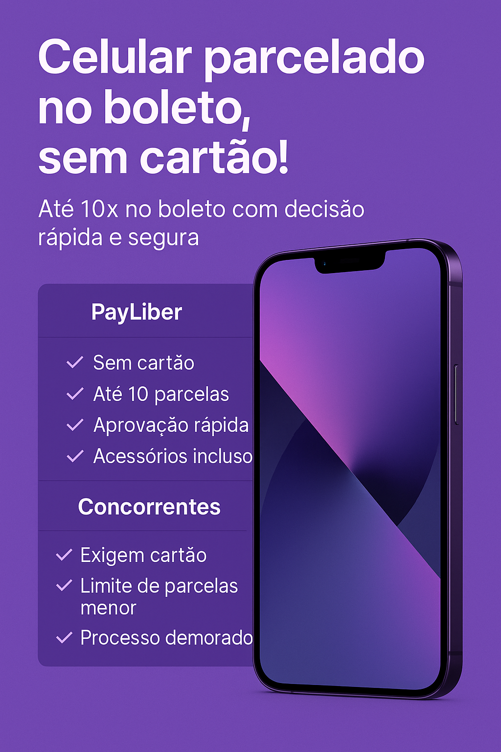 Com a PayLiber, você garante seu smartphone com a segurança do boleto parcelado e a tranquilidade de lidar com uma empresa que entende suas necessidades.
